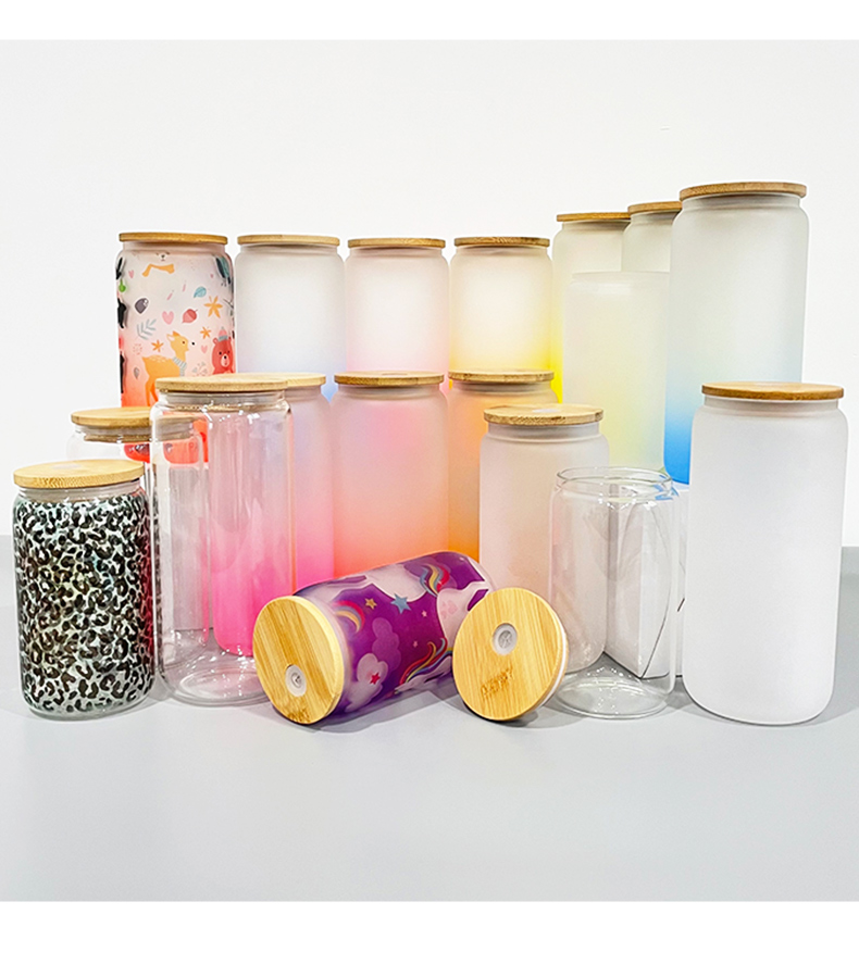 50 Pack YIPAI China Warehouse 12oz 16oz 20oz Sublimation Blanks Clear Frosted Beer Glass Can With Bamboo Lid And Plastic Straw