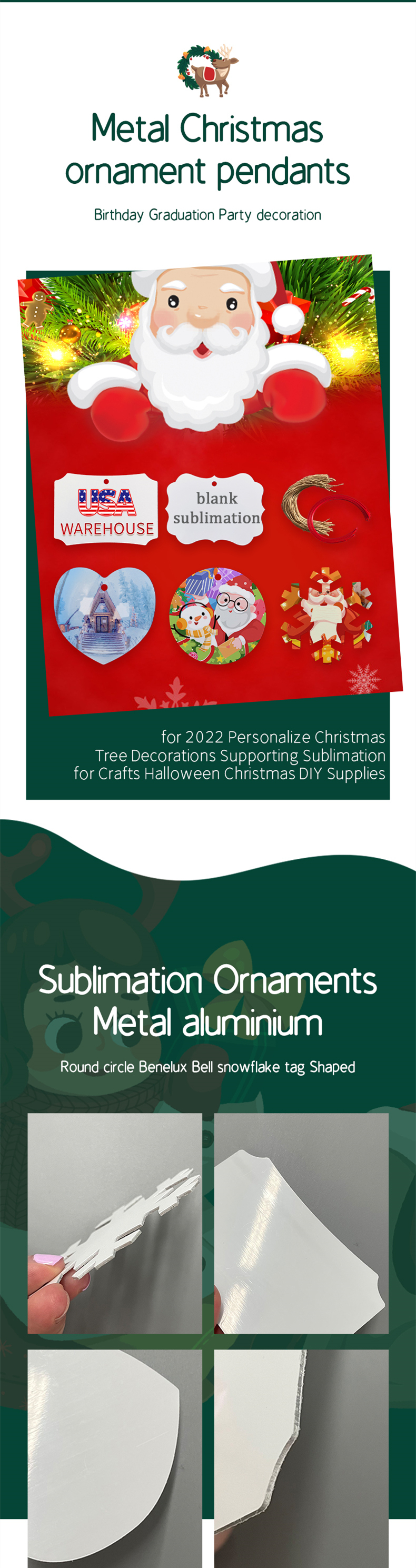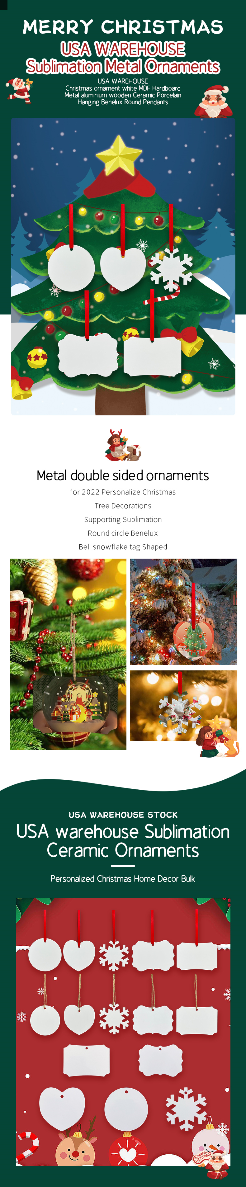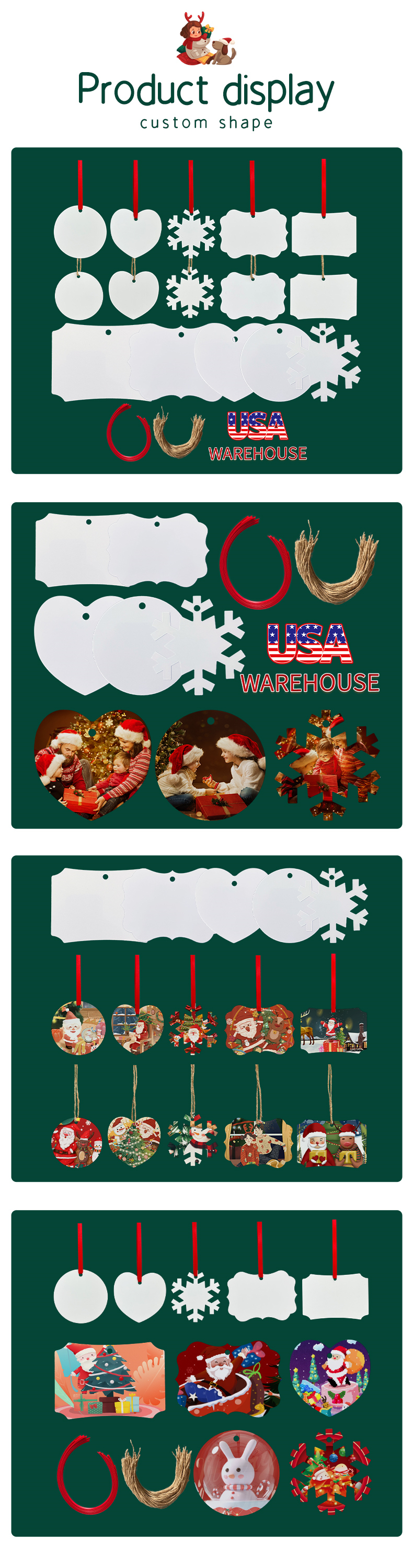 200 Pack YIPAI China Warehouse LPGJ001 Christmas Supply Wholesale Aluminum Ornaments With Red Rope And Hemp Rope Mix 5 Styles Sold By Case