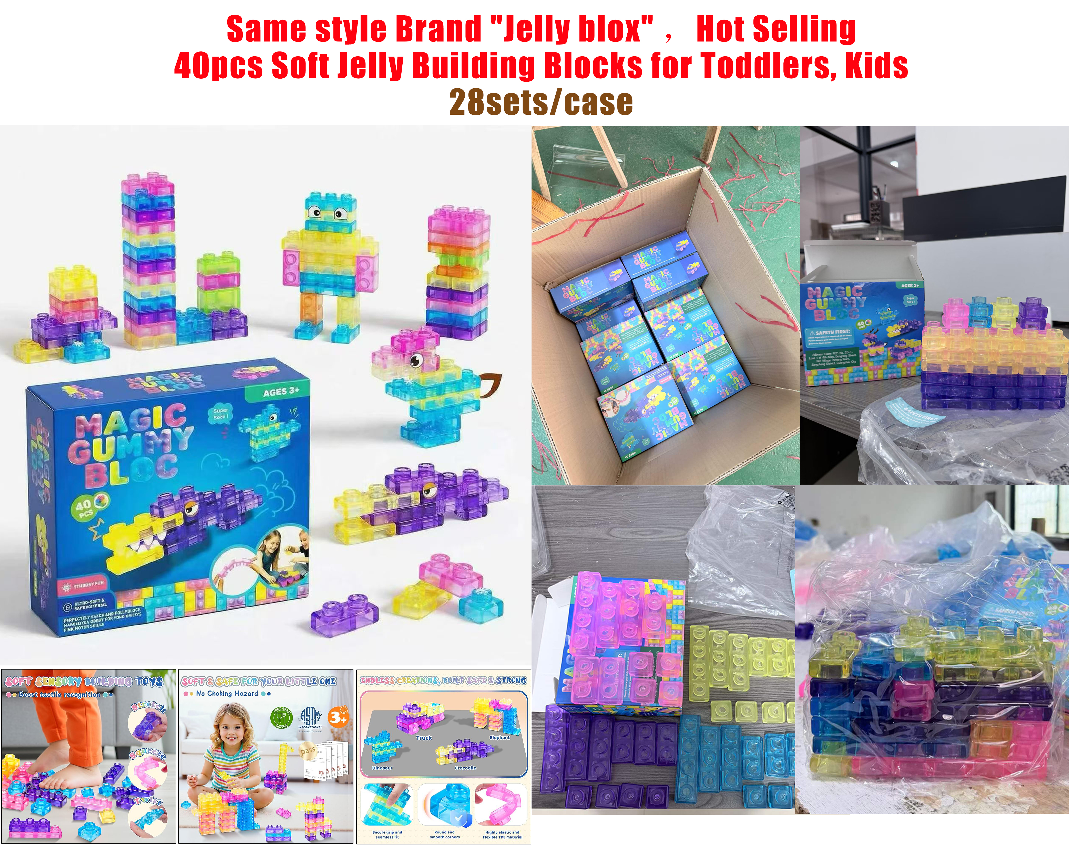 28 Pack YIPAI China Warehouse Jelly Blox Same Style Soft Jelly Building Blocks for Toddlers Kids