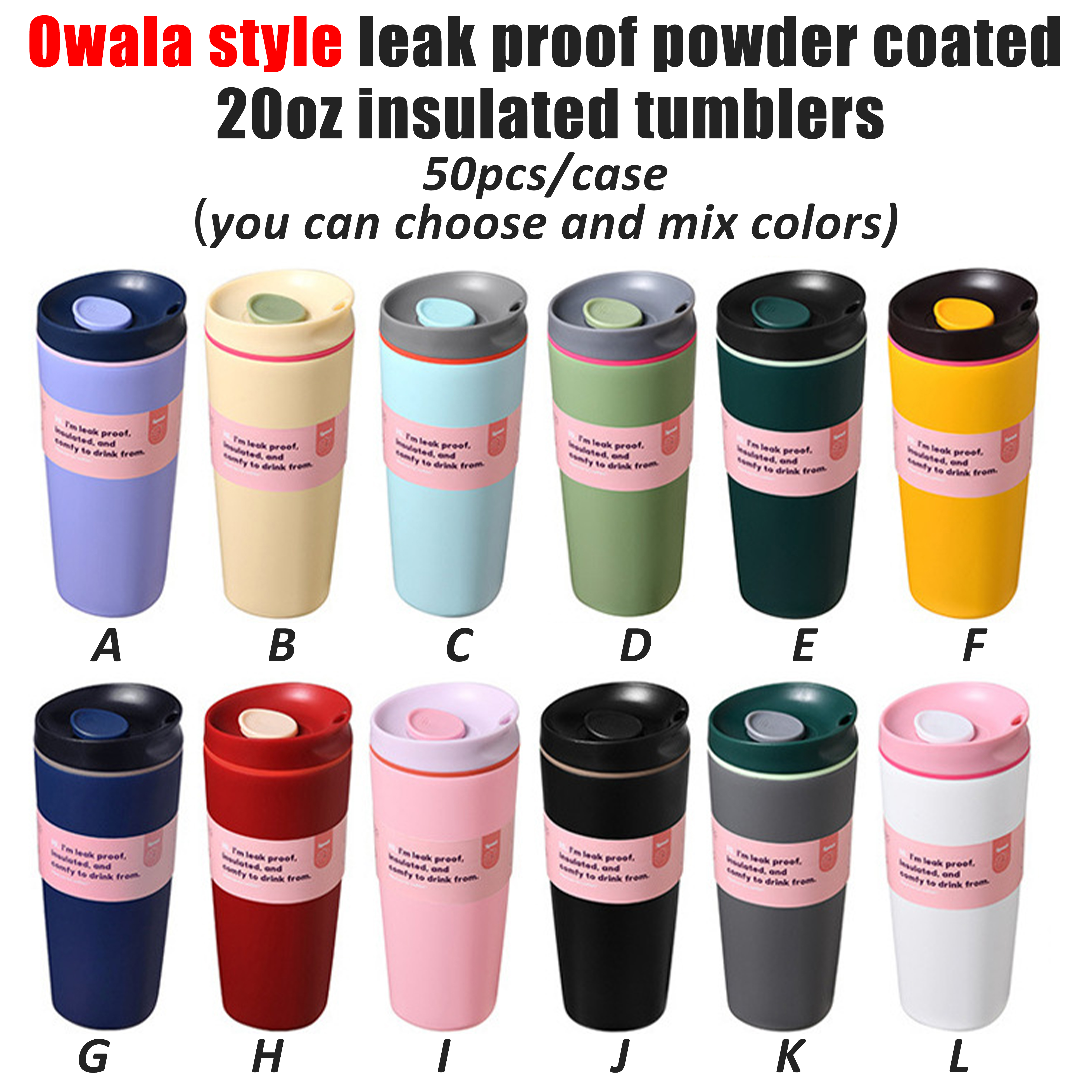 50 Pack YIPAI China Warehouse Owala Style Leak Proof Powder Coated 20oz Stainless Steel Insulated Tumblers for Laser Engraving