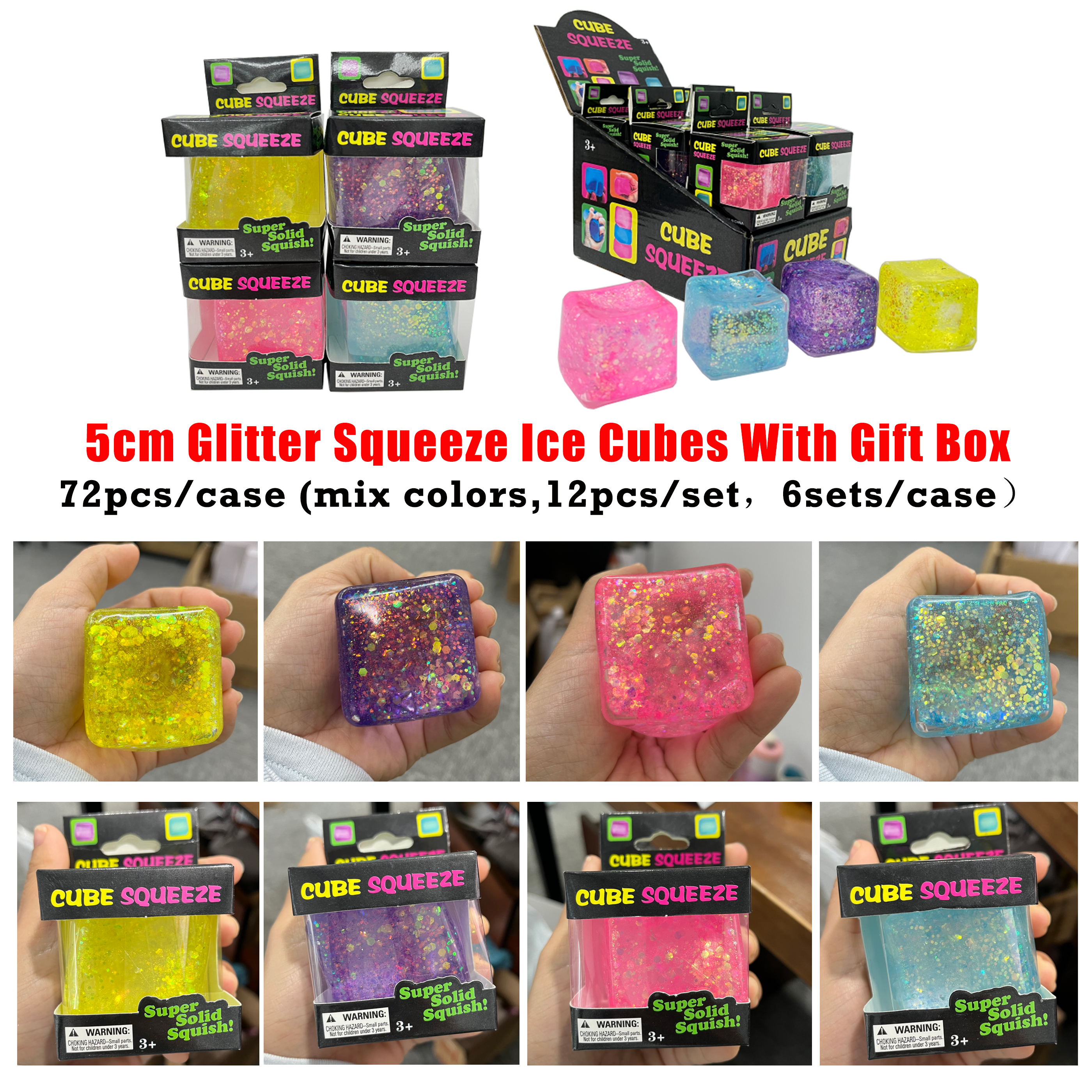 72 Pack YIPAI China Warehouse 5cm Glitter Squeeze Ice Cubes with Gift BoX