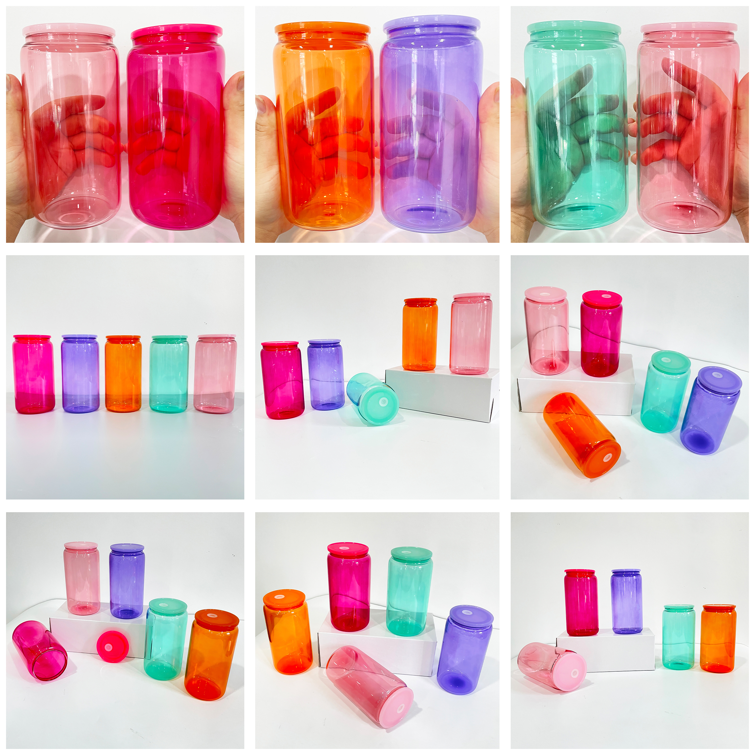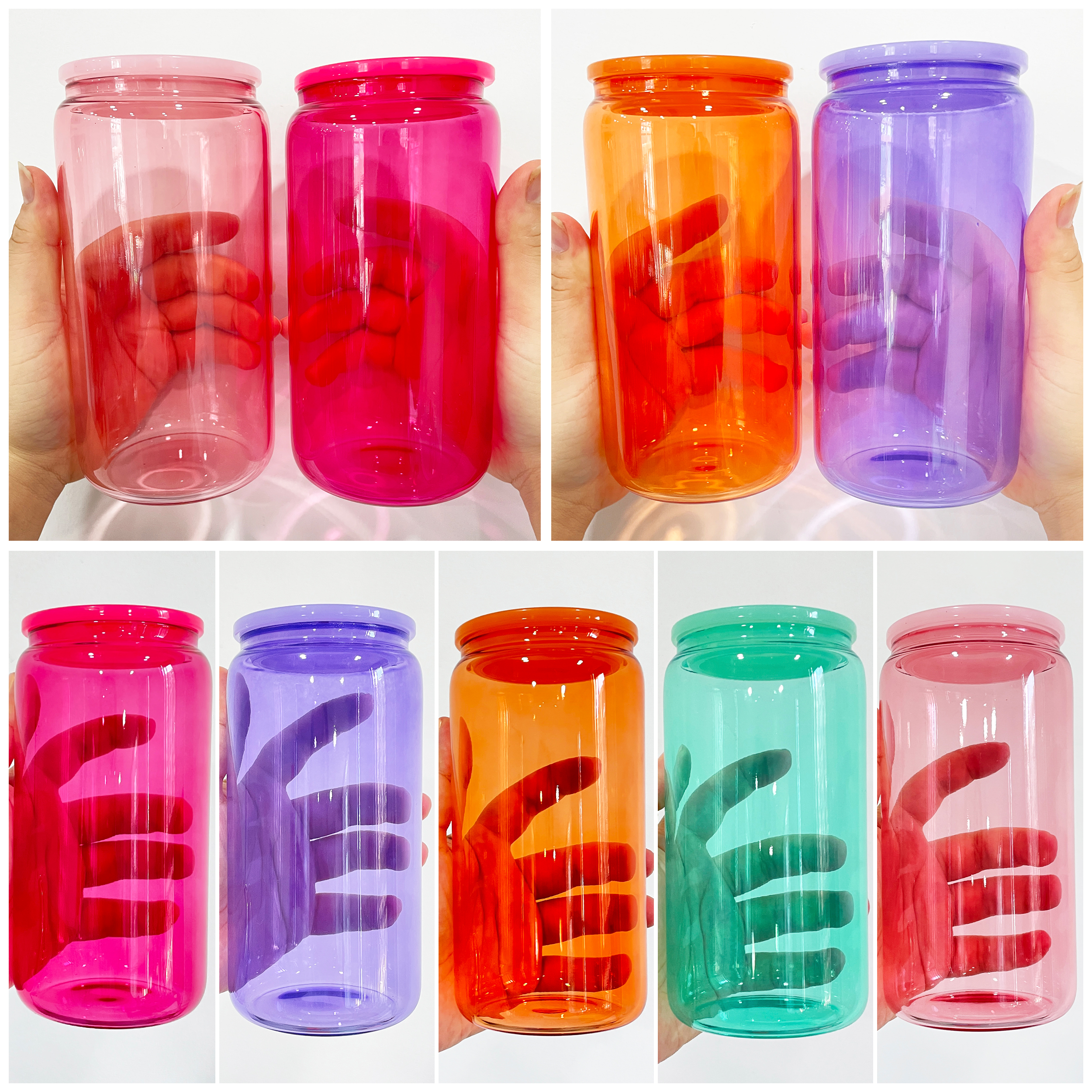 25 Pack 50 Pack YIPAI USA Warehouse Sublimation 16oz Colored Jelly Glass Can With Plastic Lids Sold By Case